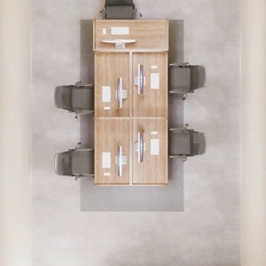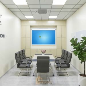 Phòng họp được thiết kế theo phong cách hiện đại, trang nhã, phù hợp cho các buổi họp nội bộ và tiếp khách. Các điểm nhấn của phòng họp: Bàn họp trung tâm kết hợp ghế da cao cấp dễ vệ sinh, trang thiết bị trình chiếu được trang bị đầy đủ và hợp lý