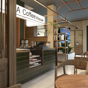 + Quầy bar thiết kế gọn gàng, tiện lợi cho thao tác pha chế và phục vụ.