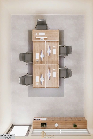 Phòng tài vụ được bố trí theo mô hình bàn làm việc cụm, giúp tối ưu diện tích và tăng khả năng trao đổi công việc giữa các nhân sự.