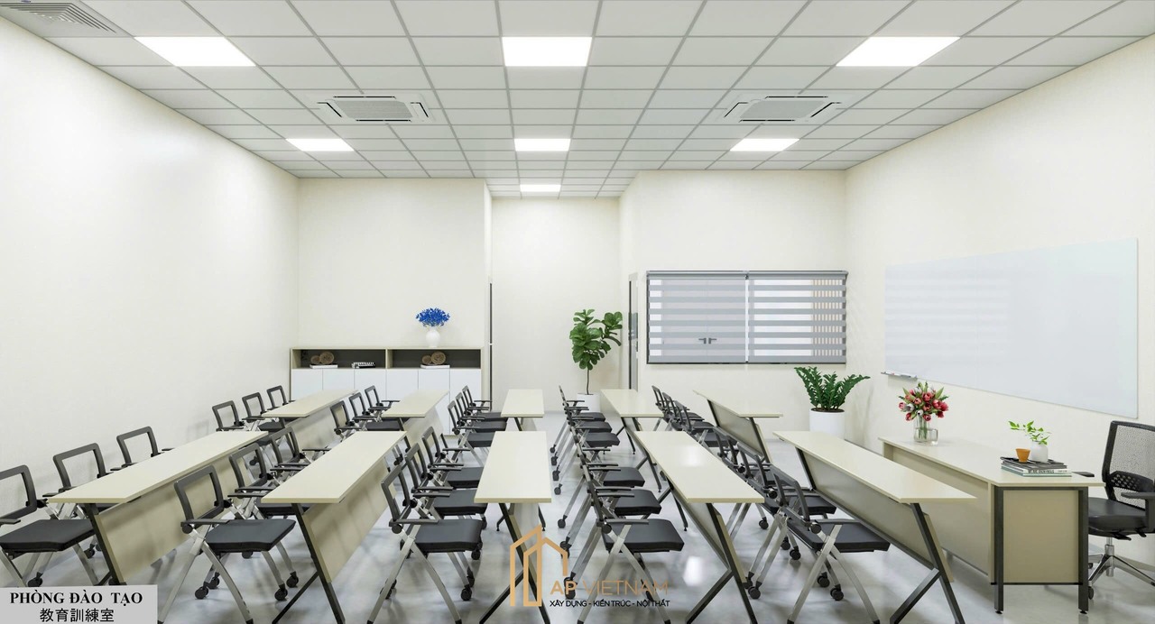 Khu vực phòng đào tạo được bố trí hệ bàn ghế linh hoạt, không gian rộng rãi, dễ quan sát. Sự bố trí khoa học giúp tối ưu khả năng tương tác giữa giảng viên và học viên.