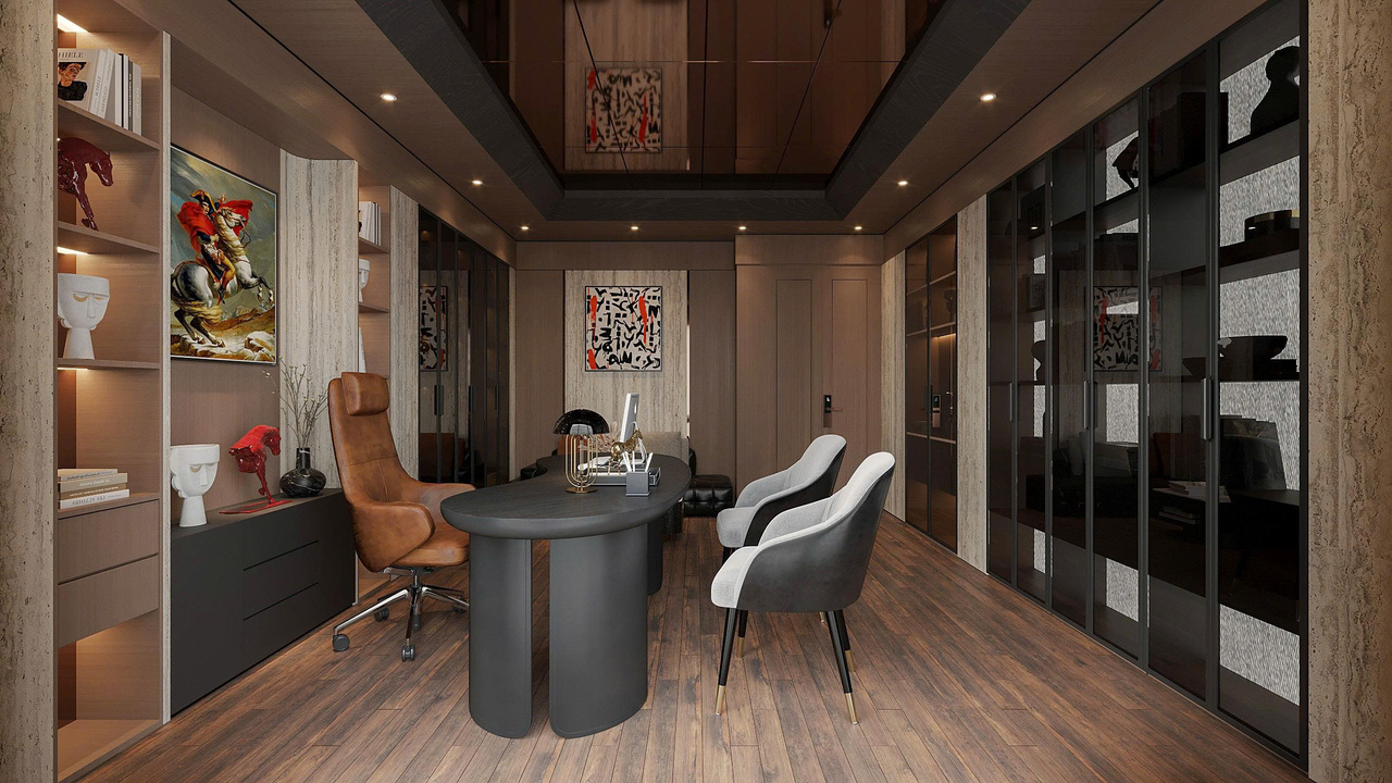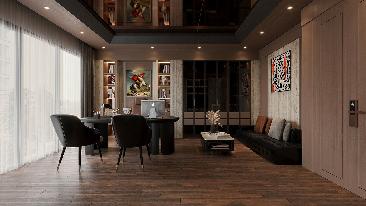 Không gian làm việc được thiết kế theo phong cách hiện đại, tập trung vào các đường nét tối giản, mạch lạc và chất liệu cao cấp: