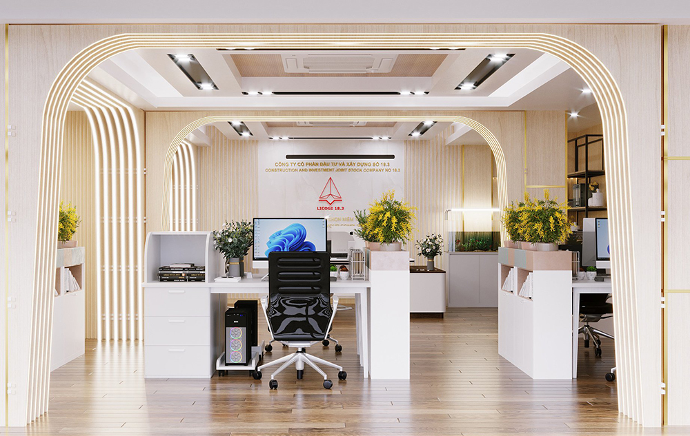Chúng tôi lựa chọn các vật liệu hoàn thiện cao cấp, thi công tỉ mỉ từng chi tiết từ trần, tường, sàn đến hệ nội thất văn phòng, giúp không gian toát lên sự sang trọng, chuyên nghiệp, đồng thời thể hiện đúng bản sắc thương hiệu của Licogi.