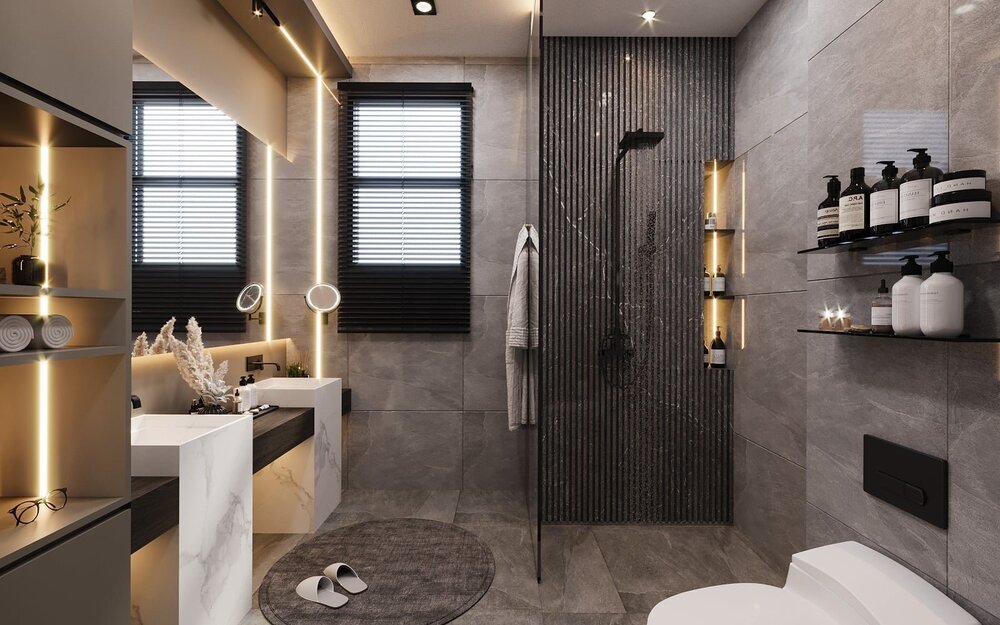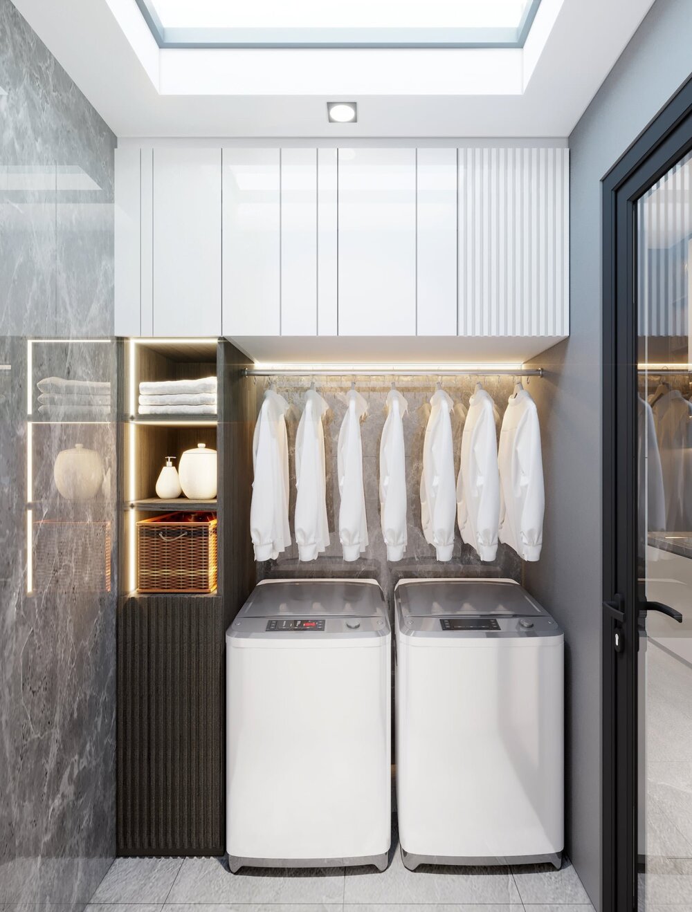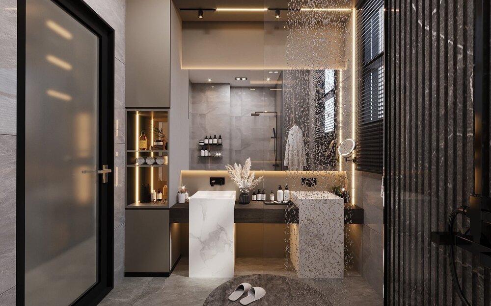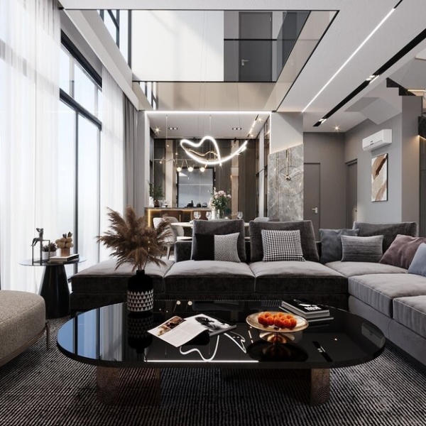 - Kết hợp gam màu trắng, ghi & đen sang trọng.