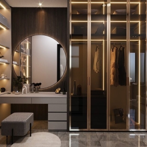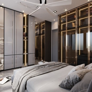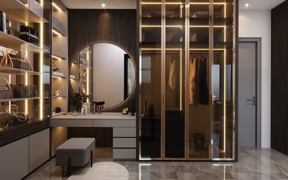 - Thiết kế tủ quần áo kịch trần kết hợp kính cường lực sang trọng.