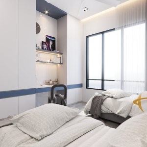 - Thiết kế 2 giường đơn đối xứng.
