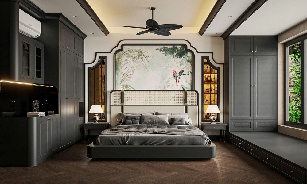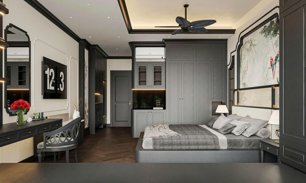 Kết hợp tinh tế giữa văn hóa Á Đông và nét cổ điển Pháp, thiết kế mang đến cảm giác ấm cúng, thư giãn và đậm chất nghệ thuật – phù hợp với khách hàng yêu thích sự hoài cổ và tinh tế.
