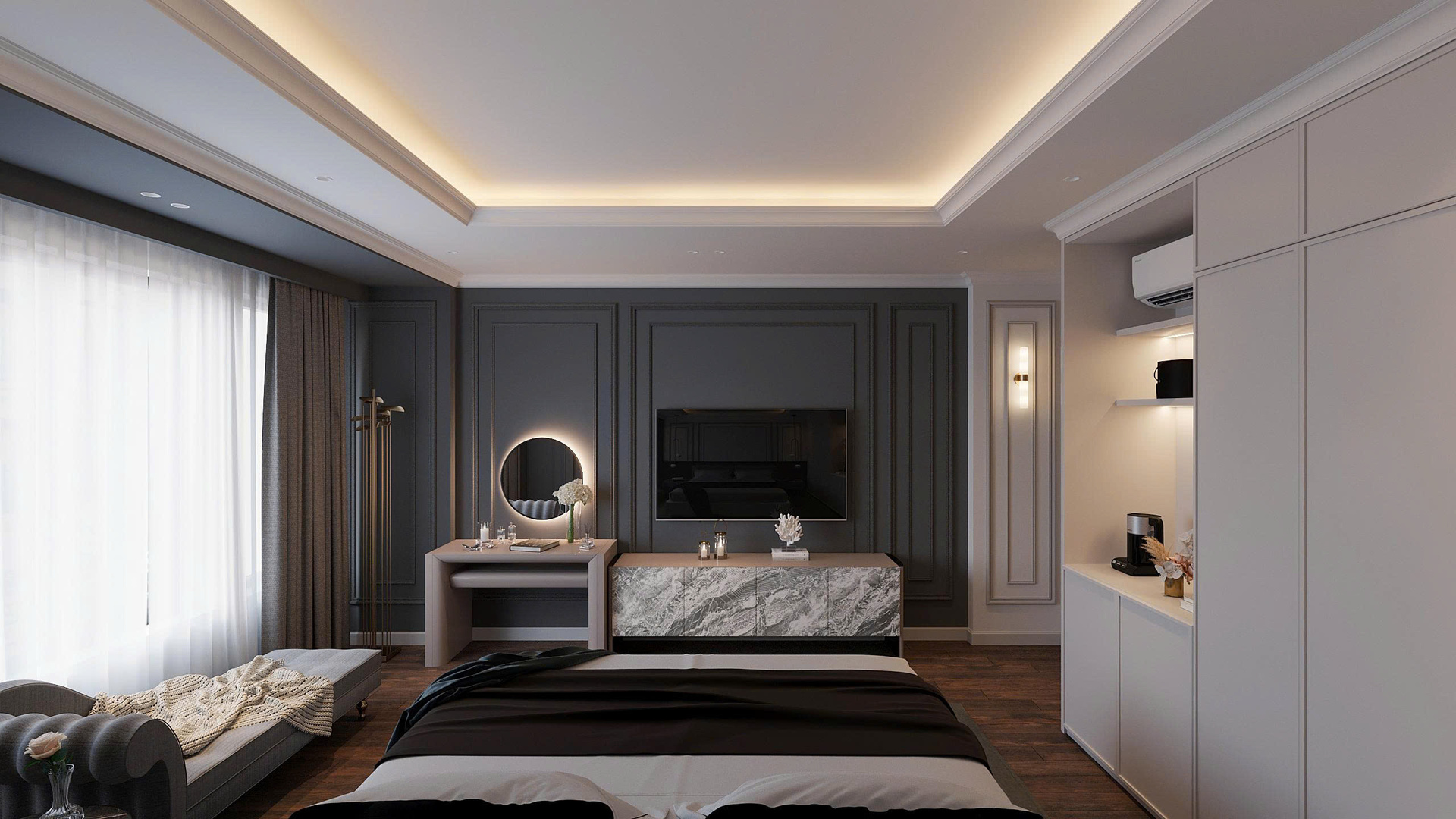 Nếu bạn muốn không gian khách sạn toát lên vẻ quý phái, xa hoa nhưng không phô trương, Neo Classic (Tân cổ điển) chính là câu trả lời hoàn hảo.
