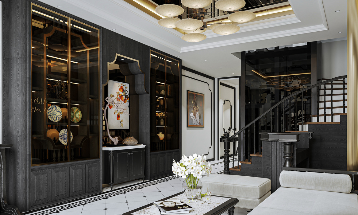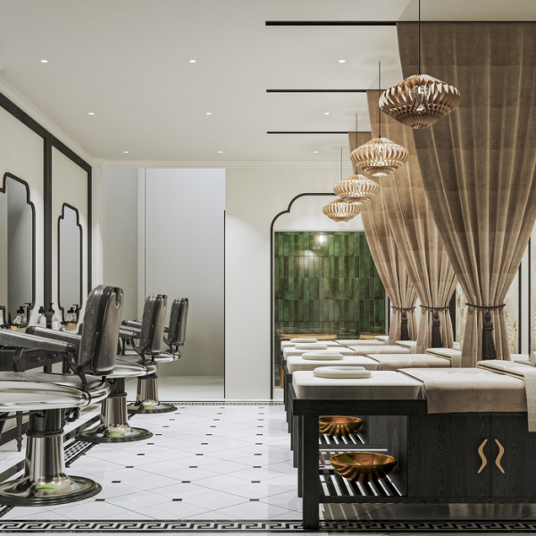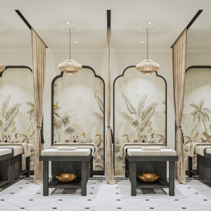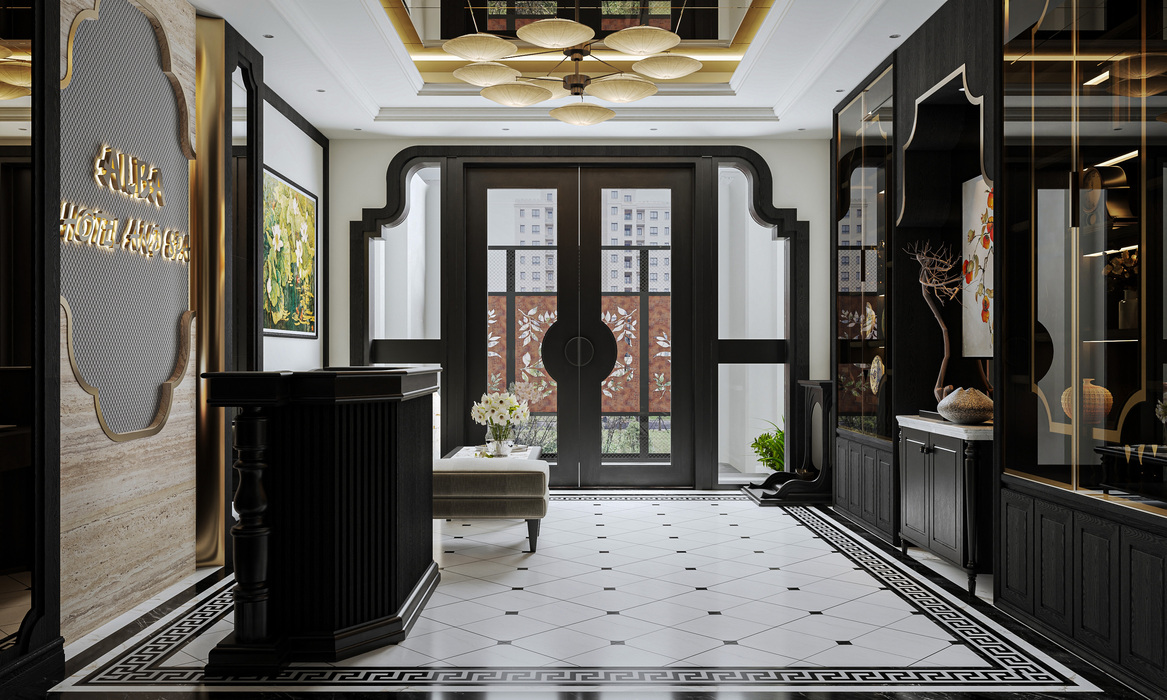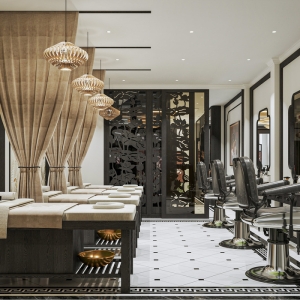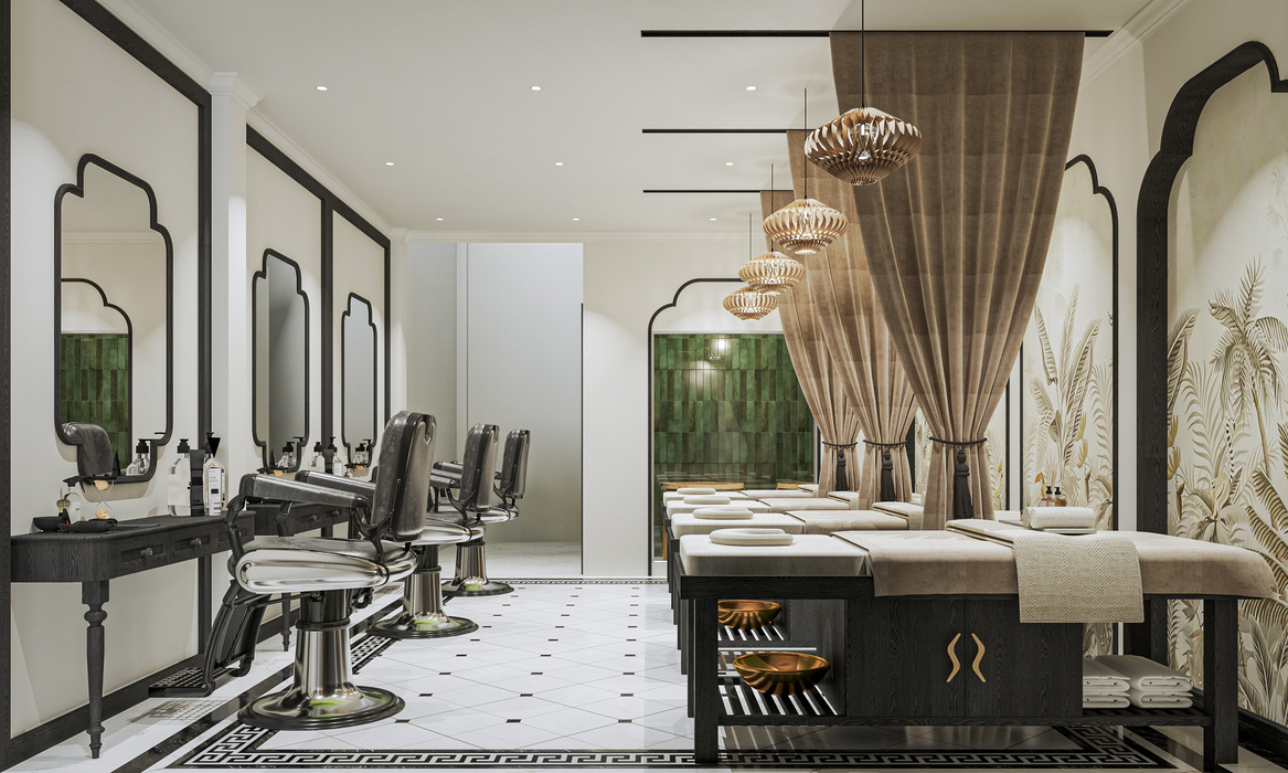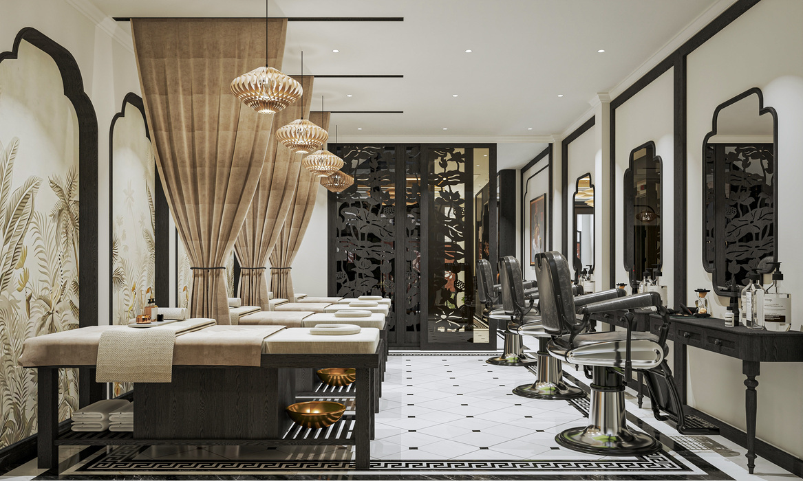 Lấy cảm hứng từ phong cách Đông Dương hiện đại (Indochine Modern), không gian spa kết hợp hài hòa giữa sự cổ điển Á Đông và nét sang trọng đương đại. Tông màu chủ đạo là đen - trắng - vàng kim tạo nên cảm giác thanh lịch, quyền quý nhưng vẫn gần gũi và tinh tế.