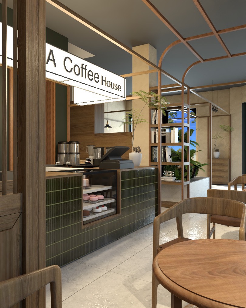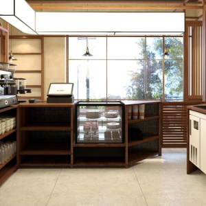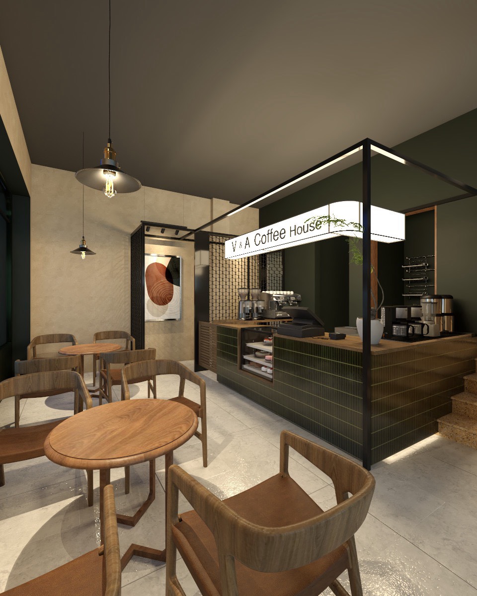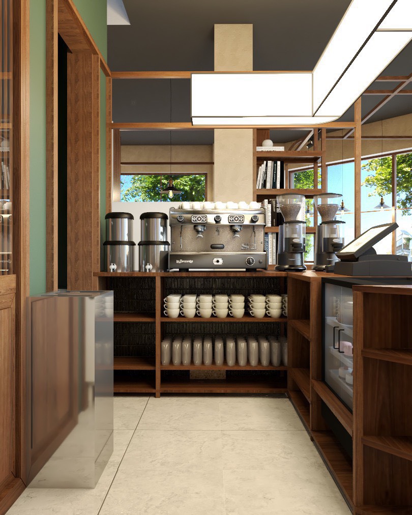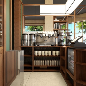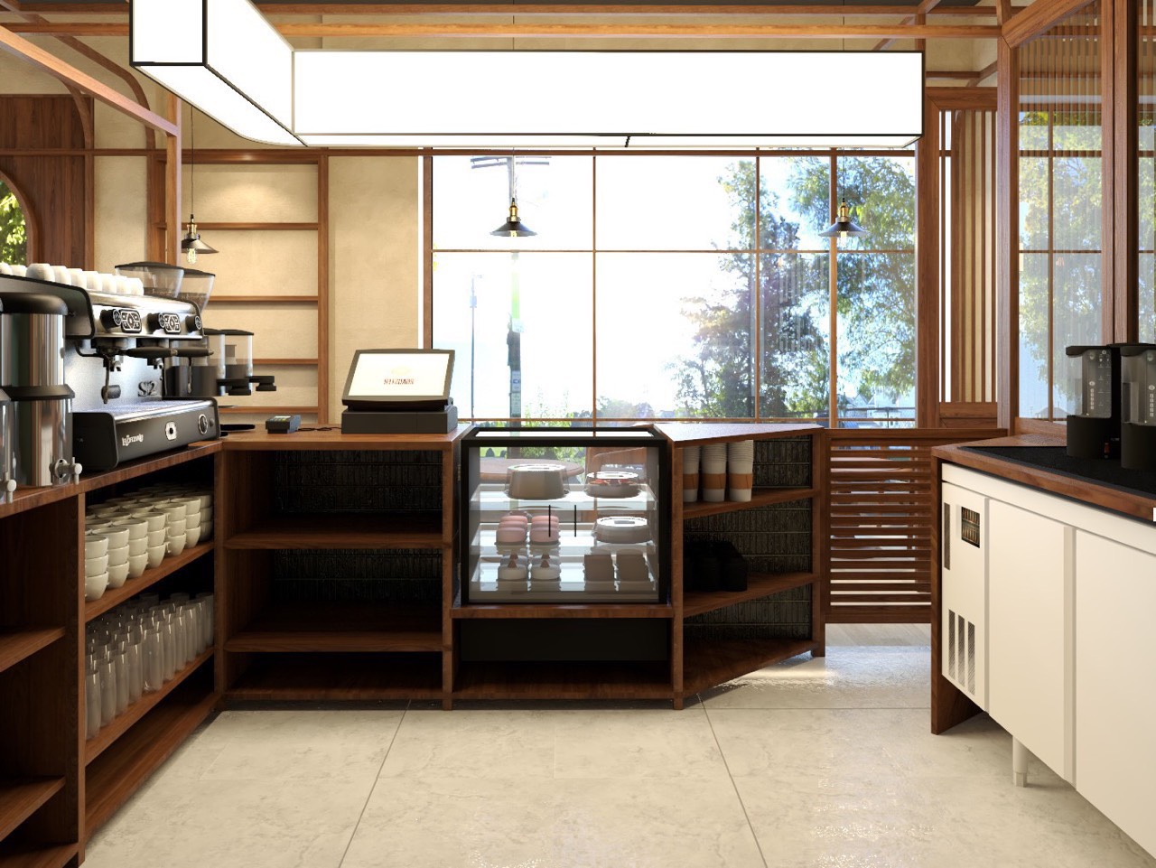 + Quầy bar thiết kế gọn gàng, tiện lợi cho thao tác pha chế và phục vụ.